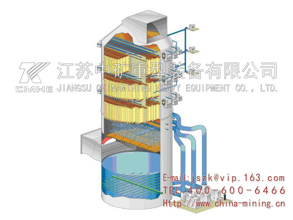 (10)布置靈活多樣:江蘇中礦擁有立式濕電除塵器和臥式濕電除塵器的成功工程經驗,根據煙氣特性、排放要求、現場場地情況,靈活按立式和臥式來布置,也可將濕式電除塵器布置在脫硫塔的上部(頂置式),以節省場地。