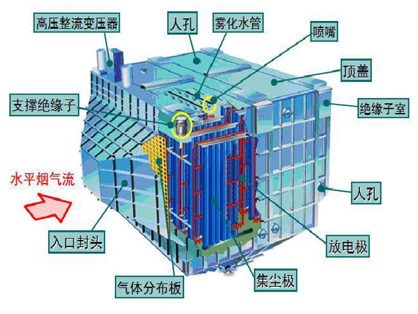 (3)利用噴水對集塵極始終保持清潔,提高單位面積的集塵效率,達到更低的排放濃度;