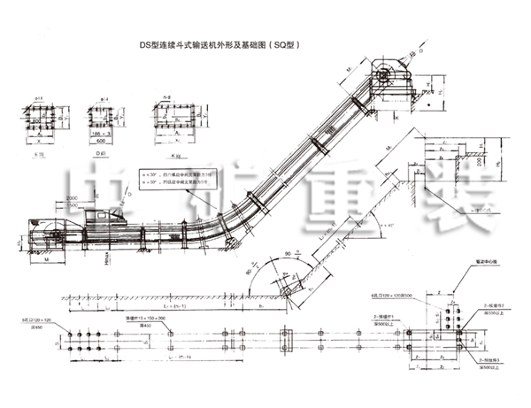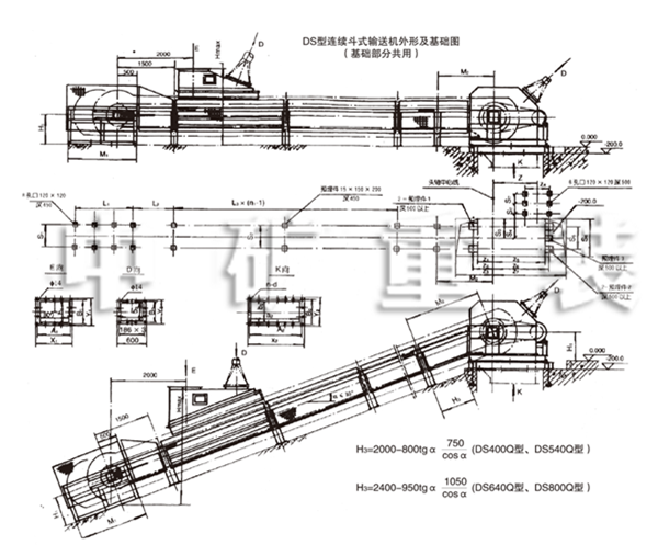 DS型連續(xù)式斗式輸送機(jī)外形及基礎(chǔ)圖(SQ型)