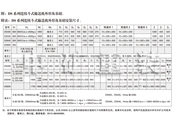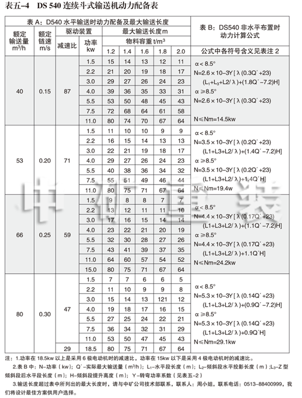 2、DS 540連續(xù)斗式輸送機(jī)動(dòng)力配備表