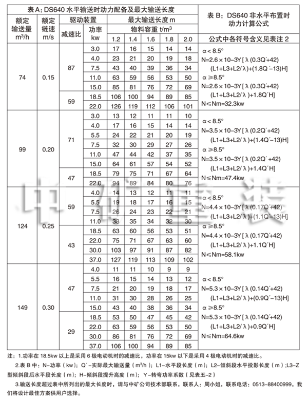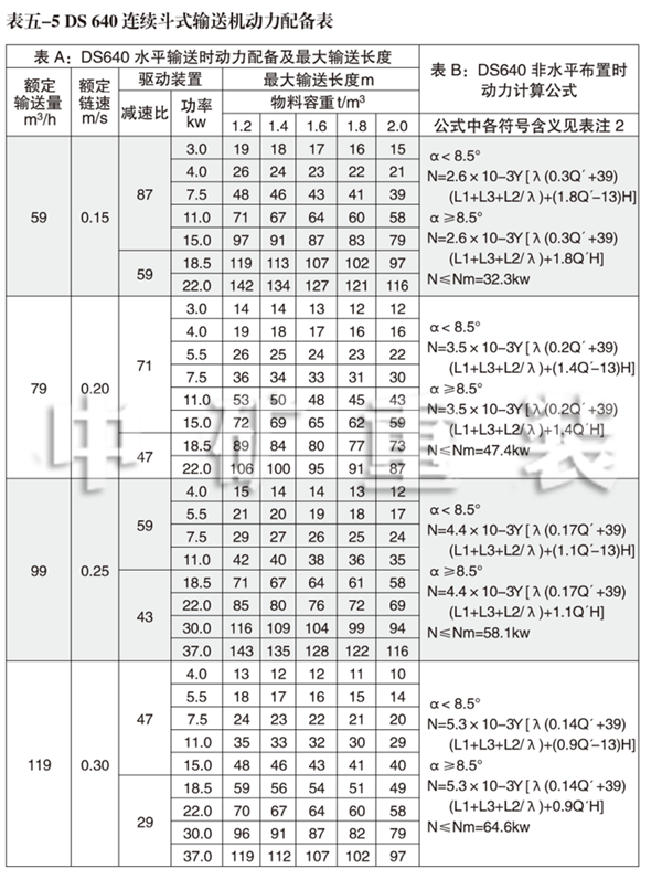 3、DS 640連續(xù)斗式輸送機(jī)動(dòng)力配備表