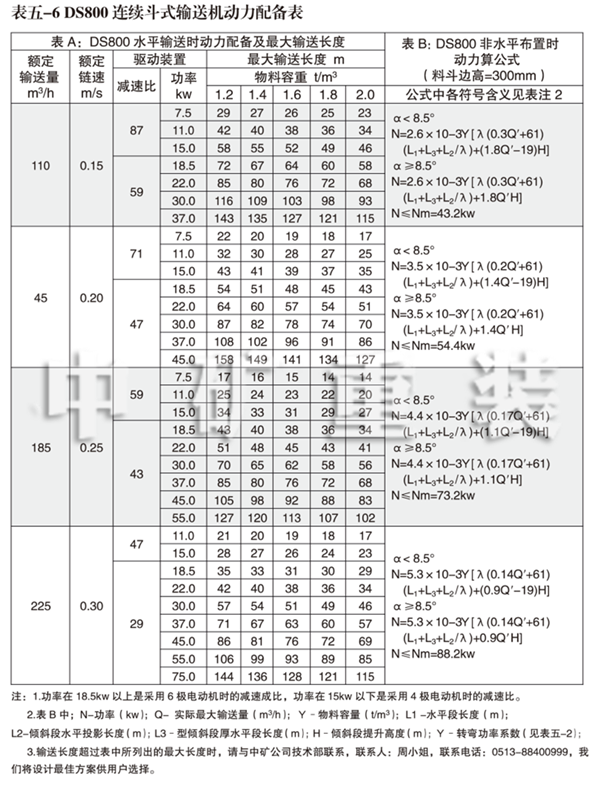 4、DS 800連續(xù)斗式輸送機(jī)動(dòng)力配備表
